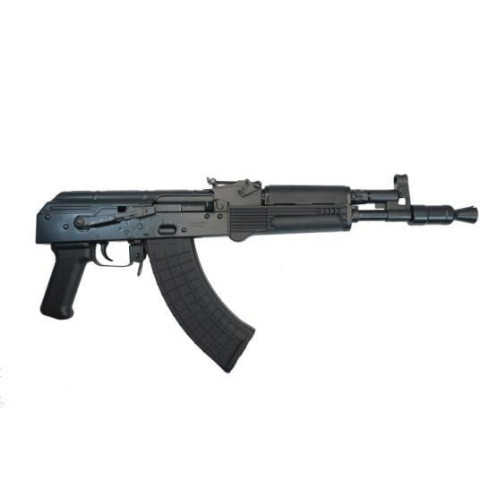 Black polymer handguards and a pistol grip provide durability and comfort for tactical handling