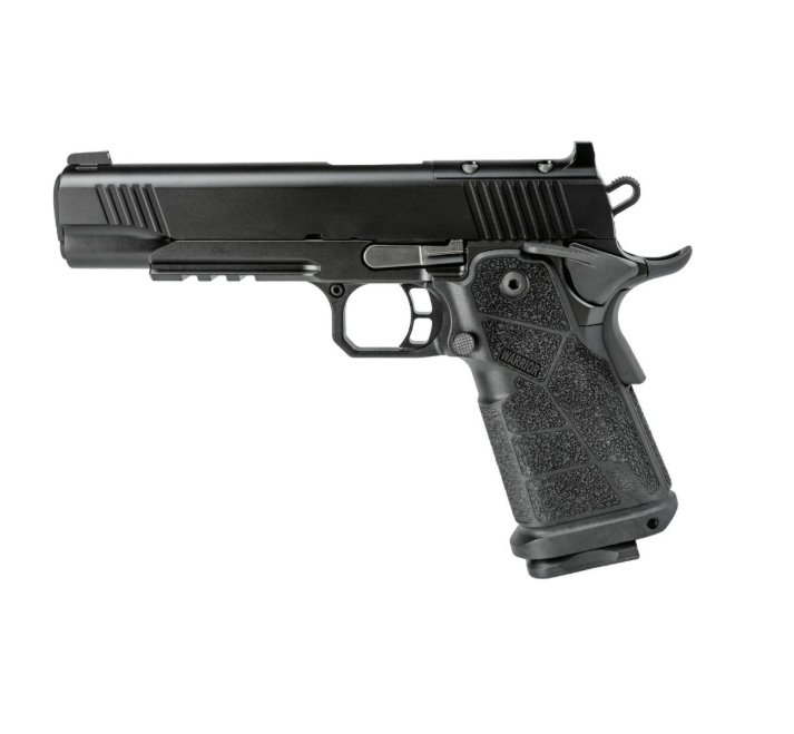 Engineered for uncompromising performance, the 1911 DS Warrior features a 5" stainless steel barrel for durability and consistent accuracy. The optic-ready slide allows seamless integration of today's most popular red dot systems, while the night sight front sight and fixed rear sight provide fast, confident target acquisition in any lighting condition. Measuring 8.7" overall in length, 5.5" in height, and 1.4" in width, the pistol maintains a commanding presence while remaining practical for duty or defensive applications. The KimPro Black finish enhances corrosion resistance and durability, ensuring it performs as reliably as it looks.